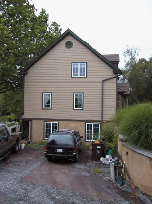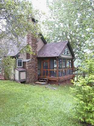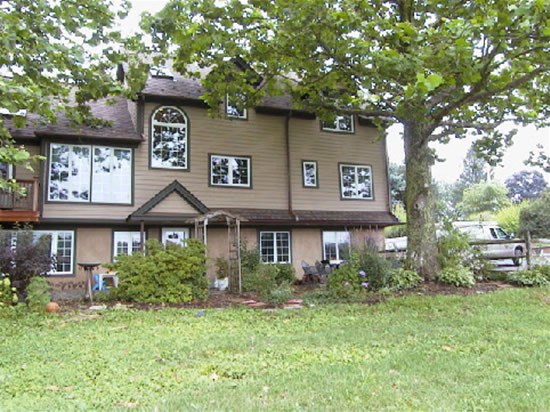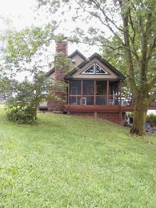 The exterior is a combination of veneer stone, hardi plank siding and copper flashings and gutter details. We added a large Master Bedroom Suite on the first floor and three bedrooms and bathroom on the second floor. The large screened in porch and raised deck are made from Ipe and the railings are made from Ipe and copper pipe. The small structure next to the chimney is a firebox, which can be loaded with wood from the outside and accessed on the inside.